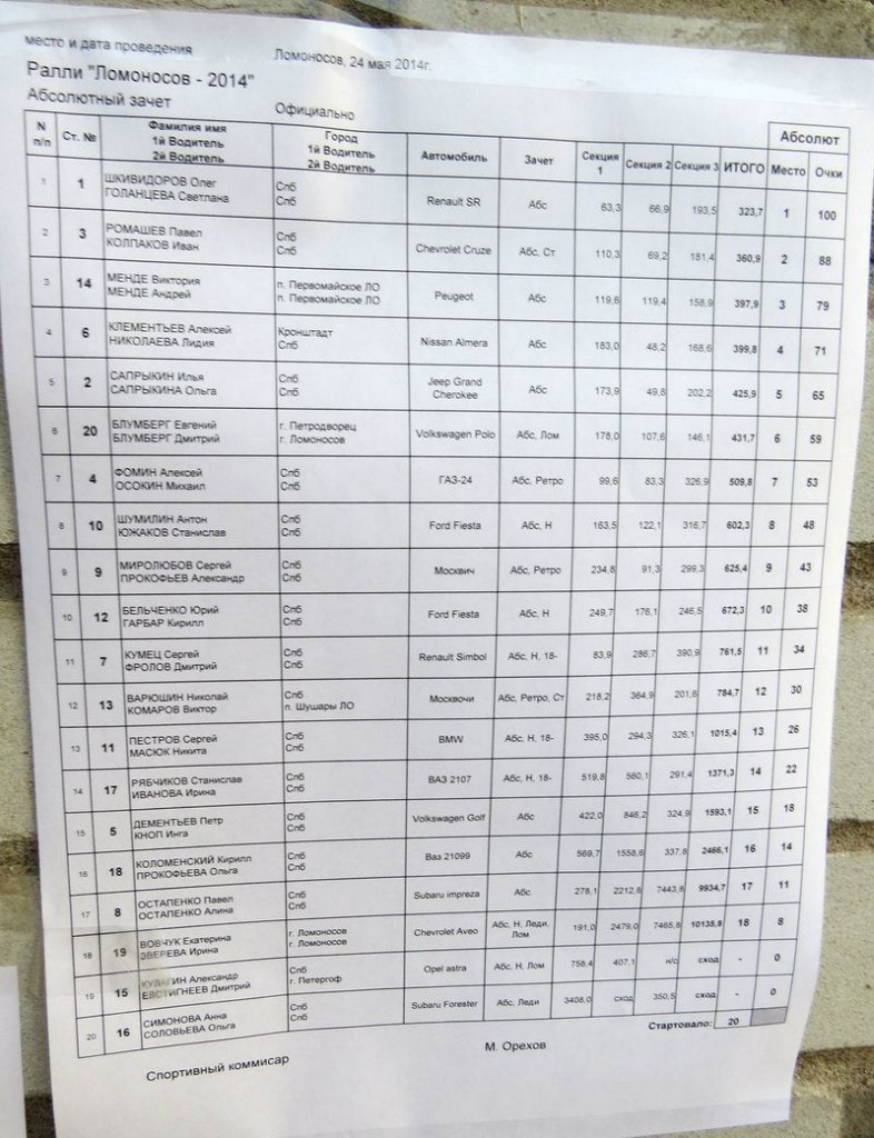 Saint-Pétersbourg, Russie | - | 10 lacs | MIR rally | Scores / Protocol | ||